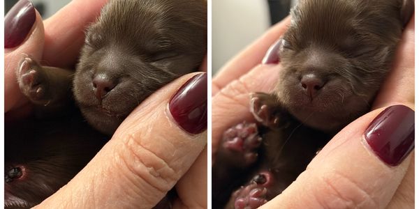 The December 2025 litter only had two little male puppies. It was a difficult whelp and not all puppies survived. Sometimes this happens for no reason at all, and we are heartbroken when it does. That being said, these two little guys are doing well and looking for new homes! They will bring lots of love and joy to any family!