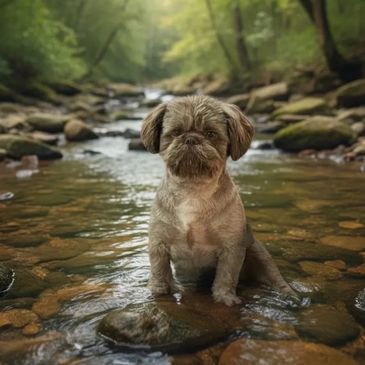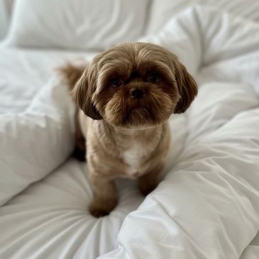 All of our dogs, including the puppies, are chocolate based. What does this mean? Chocolate, a form of liver color, is the underlying genetic color of all of our dogs. This genetic color is then passed down to all puppies. All puppies noses and skin-tone is liver. Although puppies may be dark chocolate at birth, this does not mean they will stay that way. Shih Tzu are notorious for their lightening and darkening coats as they age. A dark chocolate puppy may gradually change to a light strawberry, lavender or even a silver color. And then, they may darken again. It's also common for white spots/hairs to grow in where there were none before. Its the Shih Tzu way!